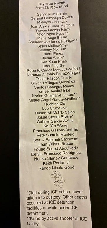 Say their names - a list of ICE related deaths. We held them in our hands and hearts.
